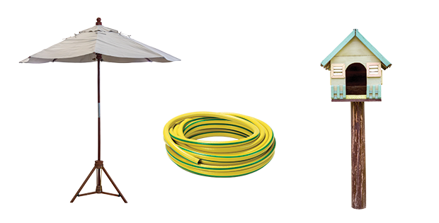 Les abris de jardin, arches, arrosoirs, bacs à fleurs, bâches, balais de jardin, balconnières, barbecues au gaz, bassines, bèches, broches, brosses, brouettes, burins, carrés potagers, cisailles, clapiers, coffrets barbecue (hors ustensiles de cuisson), composteurs, coupe-branches, couteaux, cuves, dévidoirs enrouleurs, échelles, gants de jardinage, hôtels à insectes, etc.