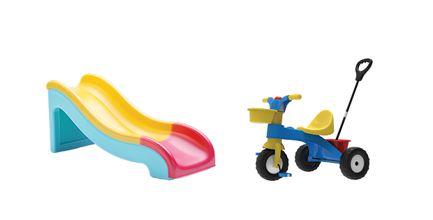 Les jeux de plein air (quilles, pistolets, toupies, billes, pelles à neige, luges, portiques, trampolines, bacs à sable, toboggans, maisons enfant, etc.) ;