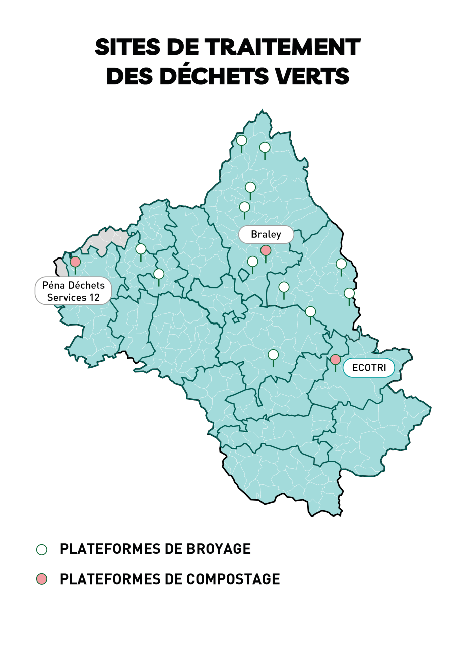 Sur le territoire, le SYDOM s'appuie sur trois sites de valorisation dont un qui lui appartient : la plateforme de compostage des déchets verts située à Millau sur le site d'ECOTRI.